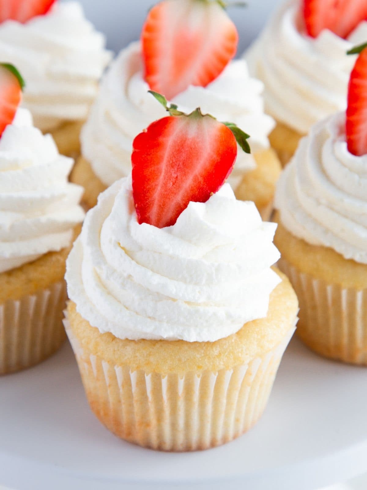 Strawberries and crème are the perfect spring and summer dessert! Made with vanilla cupcakes, strawberry jam stabilised whipped cream frosting, and fresh strawberries, these cupcakes are light, fresh, and one of my favourite cupcakes for summer!