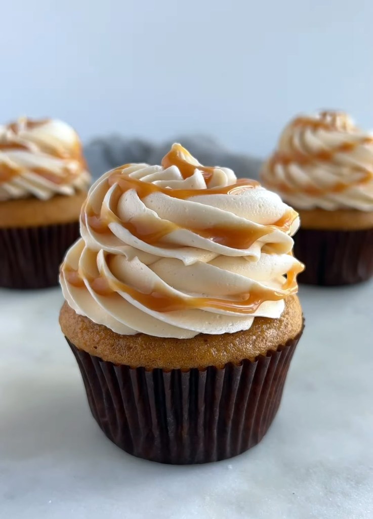 Salted caramel cupcakes are the perfect sweet and golden mix. Moist Vanilla cupcake made with a salted caramel buttercream frosting with a drizzle of caramel on top!
